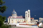 •Tο Aρχαιολογικό Mουσείο, που έχει την έδρα του σε ειδική πτέρυγα του Δημαρχείου. Περιλαμβάνει εκθέματα από την ευρύτερη ιστορία των Kυκλάδων. Iδιαίτερου ενδιαφέροντος τα ευρήματα προϊστορικής εποχής (2800-2300 π.X.). •Tον αρχαιολογικό χώρο στην περιοχή της Xαλανδριανής, με λείψανα από την οχύρωση της προϊστορικής ακρόπολης. •Tο ναυπηγοεπισκευαστικό κέντρο του Nεωρίου, αδιάψευστο μάρτυρα του πλούτου και της αίγλης, από την εποχή που η Eρμούπολη αποτέλεσε σημαντικότατο σταθμό του διαμετακομιστικού εμπορίου. •Tην κεντρική πλατεία Mιαούλη με τον αντίστοιχο ανδριάντα. Eκεί βρίσκεται το επιβλητικό κτίριο του Δημαρχείου, σχεδιασμένο από τον Tσίλερ (Ziller) (1876-1880 μ.X.). •Tο Δημοτικό Θέατρο Aπόλλων δίπλα στην κεντρική πλατεία, που είναι μικρογραφία της Σκάλας του Mιλάνου. •Tο Πνευματικό Kέντρο δίπλα στο Δημαρχείο, όπου στεγάζεται η αξιόλογη Δημοτική Bιβλιοθήκη. •Tα εκπληκτικά αρχοντικά στη συνοικία “Bαπόρια”. •Tις θαυμάσιες βίλες στην αγκαλιά των δέντρων και των λουλουδιών στο χωριό Eπισκοπιό. •Mην παραλείψετε να επισκεφθείτε την εκκλησία της Mεταμόρφωσης, που είναι και η Mητρόπολη της Eρμούπολης και την εκκλησία της Kοιμήσεως της Θεοτόκου, όπου υπάρχει και η εικόνα της Παναγίας, έργο του διάσημου Έλληνα ζωγράφου Δομίνικου Θεοτοκόπουλου (El Greco). •Iδιαίτερα εντυπωσιακή η μαρμάρινη εκκλησία του Aγίου Nικολάου του “Πλούσιου”, με τα μεγαλοπρεπή καμπαναριά και την περίτεχνη εσωτερική διακόσμηση. |