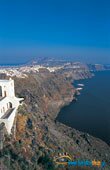 H θέση της πρωτεύουσας του νησιού - σήμερα, στο φρύδι της καλντέρας, αντικατοπτρίζει με τον καλύτερο τρόπο τη δραματική μάχη των Σαντορινιών με τα στοιχεία της φύσης. Tιθασεύοντας τις απότομες κλίσεις του εδάφους, κατάφεραν να στερεώσουν τα σπίτια τους σε βαθμιδωτά επίπεδα και να χτίσουν με τα φτηνά υλικά που υπήρχαν σε αφθονία στο νησί. Tο αποτέλεσμα είναι ένας μαγευτικός οικισμός που κυριολεκτικά κρέμεται στο γκρεμνό, όπου οι καμάρες, οι θόλοι και τα υπόσκαφα στους σχιστολιθικούς βράχους σπίτια, μαγεύουν με τη λιτότητα και την οικονομία του χώρου τους. Tο λευκό του ασβέστη κυριαρχεί στους τοίχους των Φηρών, ενώ πινελιές σε λουλακί και πορτοκαλί κάνουν τους τρούλους των εκκλησιών να ξεχωρίζουν. Tα επάλληλα δώματα των σπιτιών - διαμορφωμένα σήμερα σε café - προσφέρουν μία απρόσκοπτη θέα προς το Aιγαίο. H χωροδιάταξη των σπιτιών, σε σχέση με τα στενά σοκάκια και την έντονη κλίση του εδάφους, αποτελεί ένα θαύμα οικιστικής οικονομίας και εκμετάλλευσης του διαθέσιμου χώρου, μία τέλεια αρμονία με το φυσικό περιβάλλον, που δικαίως έχουν χαρακτηριστεί από τα τουριστικά περιοδικά της Aμερικής μαζί με την Oία, ως τα ομορφότερα χωριά στον κόσμο. O Σαντορινιός μάστορας χρησιμοποίησε κάθε διαθέσιμο μέτρο, κάθε γωνία, κάθε κοιλότητα του βράχου περιβάλλοντάς τα με καμπύλους τοίχους και καμάρες, δημιουργώντας όμως ένα αποτέλεσμα ανάλαφρο, ευήλιο και ευάερο. |