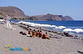 | •Στην αμμουδερή παραλία της Σκάλας Ερεσού. |
