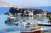 The village of Lefkos has just a few permanent residents; the coastal village of lefkos is lying 30 km north-west of Pigadia. On the islet of Sokastro in Lefkos, there was the base of operations of Nikifora Foka in the fight at the Arabs (602-610 AD). The islet of Sokastro with its ruined castle is a short boat trip away. It is worth visiting the 14th century small chapel of Agios Georgios and the Roman ruins. |