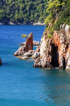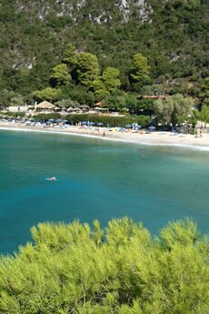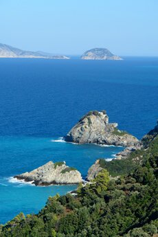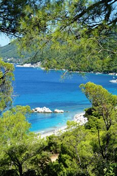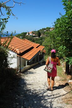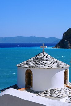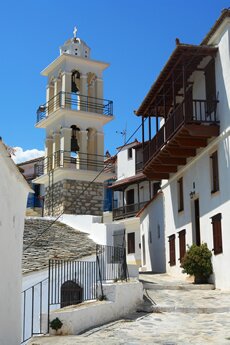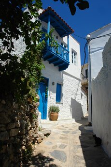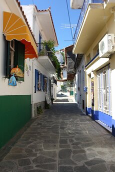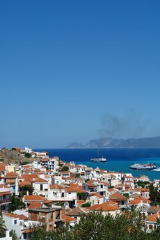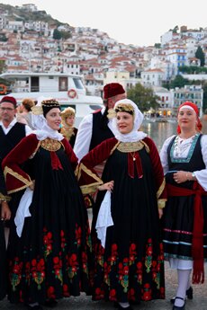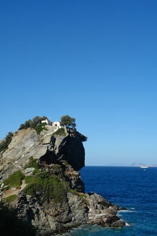 Επιστροφή ΣΚΟΠΕΛΟΣ Τρίτη, 20 Σεπτεμβρίου 2016 Στα ακρογιάλια της τα πεύκα λούζονται στα κύματα. Στα φρεσκοασβεστωμένα ανηφορικά καλντερίμια της Χώρας και της Γλώσσας νιώθεις τους χτύπους της «καρδιάς» της. Τούτο το καταπράσινο νησί των Β. Σποράδων θα «φλερτάρει» με τις αισθήσεις σου με χίλιους - δυο τρόπους. Αν το σμίξιμο του βουνού και της θάλασσας είναι ό,τι αναζητάς, σίγουρα θα την ερωτευθείς. Και όχι άδικα. Με αφορμή το 4ο Φεστιβάλ Παραδοσιακών Χορών «Διαμαντής Παλαιολόγος», το οποίο διοργανώθηκε στα τέλη Αυγούστου, ταξιδέψαμε ως την ξεχωριστή Σκόπελο, που μας μάγεψε με αλλιώτικο τρόπο αυτή τη φορά… Κείμενο – Φωτογραφίες: Ιωάννα Παραβάλου Γειτονοπούλα της Σκιάθου και της Αλοννήσου, ανήκει στις Β. Σποράδες και ξέρει καλά να μαγεύει τον ταξιδευτή που αναζητά αυτό ακριβώς το «πάντρεμα» του μπλε και του πράσινου. Μεθυσμένη από τις μυρωδιές του ρετσινιού, της ρίγανης και του θυμαριού, η Σκόπελος αρμενίζει στο Αιγαίο από χρόνια μακρινά… Η φύση την προίκισε απλόχερα με χρυσαφένιες αμμουδιές με γαλαζοπράσινα νερά, απάνεμους όρμους, μα και πυκνά δάση με πεύκα που φθάνουν ως τα κύματα. Για να νιώσεις την «ψυχή» αυτού του νησιού, να αγγίξεις την ιδιαίτερη γοητεία του, θα πρέπει κατ’ αρχήν να του διαθέσεις αρκετό χρόνο. Να βγεις σεργιάνι στα ανηφορικά σοκάκια της Χώρας με τις καμάρες και τα παραδοσιακά σπίτια με τα λουλούδια στα παράθυρα, αλλά και τις 123 εκκλησιές ανάμεσά τους… Να φθάσεις ψηλά στο Κάστρο για να απολαύσεις τον ανοιχτό ορίζοντα και το μπλε του ουρανού και της θάλασσας να γίνονται ένα… Να κολυμπήσεις στις πανέμορφες παραλίες της με τα σμαραγδένια νερά… Να μείνεις εκστασιασμένος μπροστά στο βράχο με το εκκλησάκι του Άι Γιάννη στο Καστρί που μοιάζει ν’ «ανοίγει πανιά» για το πέλαγος και να ανεβείς ως την κορυφή του για να νιώσεις δέος μπροστά στην απεραντοσύνη του Αιγαίου... Να δοκιμάσεις ξανά και ξανά τις φανταστικές σκοπελίτικες τυρόπιτες και το τοπικό γλυκό δαμάσκηνο αυγάτο, για να μην ξεχάσεις ποτέ τη νοστιμιά τους… Να περπατήσεις στα φρεσκοασβεστωμένα σοκάκια της Γλώσσας και στα γραφικά δρομάκια του χωριού Παλαιό Κλήμα, για να αισθανθείς την αυθεντική, ανόθευτη παραδοσιακή ομορφιά αυτού του νησιού… Να επισκεφθείς τα αξιόλογα μοναστήρια της για να ανάψεις ένα κερί, όπως είναι τα Μοναστήρια της Ευαγγελιστρίας, της Μεταμόρφωσης, του Προδρόμου, του Αγίου Ρηγίνου, της Λιβαδιώτισσας και της Αγίας Βαρβάρας. Φυλλομετρώντας θύμησες παλιές… Η Σκόπελος κατοικείτο ήδη από χρόνια μακρινά. Τα παλαιότερα λείψανα κατοίκησης τοποθετούνται μέχρι σήμερα στην πρώιμη και τη μέση μυκηναϊκή περίοδο (16ος - 14ος π.Χ. αι.). Η αρχαιολογική σκαπάνη έφερε στο φως το 1936 τον τάφο του βασιλιά Στάφυλου στον ομώνυμο κόλπο. Εικάζεται ότι το νησί κατοικήθηκε από τους Κρήτες γύρω στο 1600 π.Χ. με αρχηγό τον μυθικό πρίγκιπα Στάφυλο, γιο της Αριάδνης και του Θησέα. Κατά τους αρχαίους χρόνους ακμάζει η αρχαία Πεπάρηθος (όπως ονομαζόταν το νησί τότε). Οι Κρήτες έφεραν ρίζες ελιάς, αμπέλια και δημητριακά που εδώ αναπτύχθηκαν ιδιαίτερα. Το 13ο αιώνα το νησί καταλαμβάνεται από το βασιλιά της Ιωλκού Πελία. Ακολουθεί παρακμή για μεγάλο διάστημα. Όμως, τον 6ο π.Χ. αι. η ευημερία επιστρέφει στο νησί με τις εξαγωγές λαδιού και κρασιού (ο «πεπαρήθιος οίνος» θεωρείτο ιδιαίτερα αφροδισιακός). Στη νοτιοδυτική πλευρά της Σκοπέλου, στον οχυρωμένο λόφο Παλαιόκαστρο, βρισκόταν η α